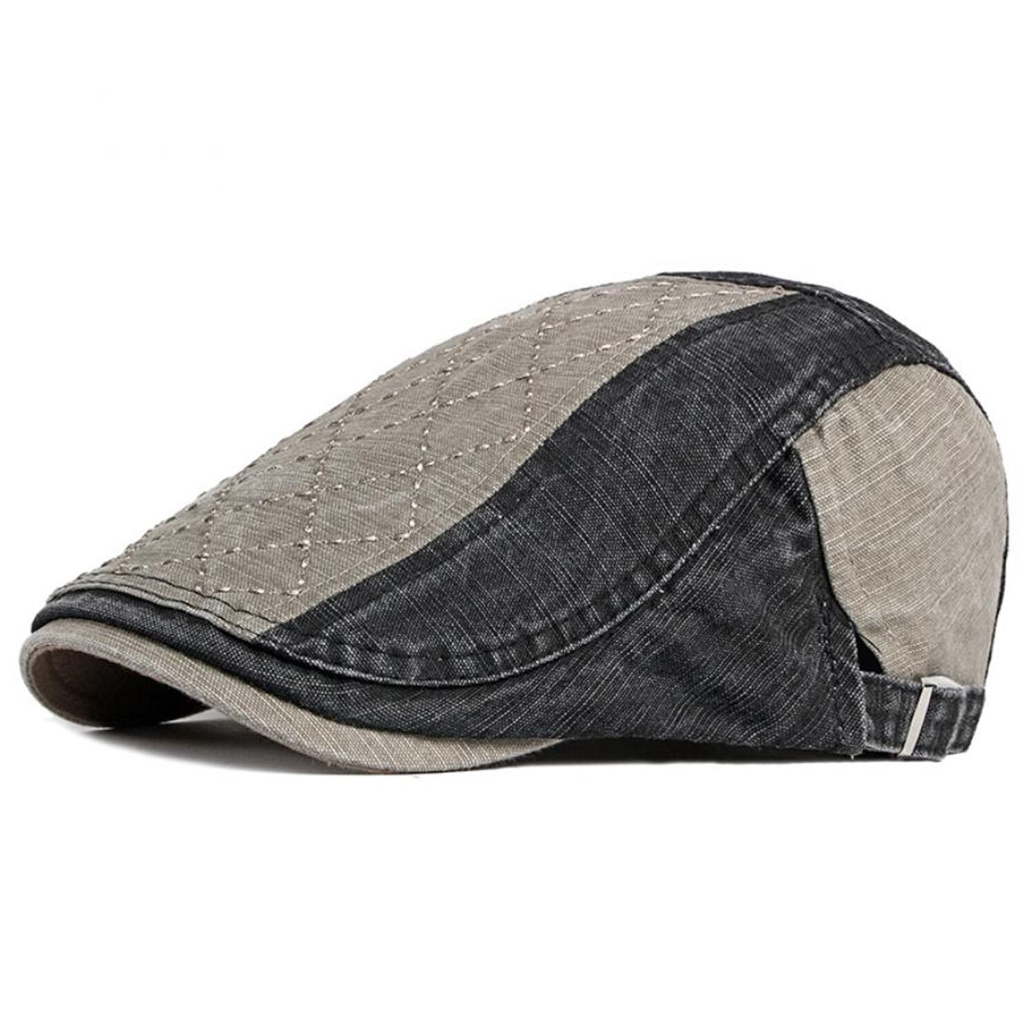 [Eternal Leaf] ハンチング帽子 バイアス チェック ステッチ ミリタリー デニム ハンチング メンズ レディース フリーサイズ FT25217(04.カーキ) | Eternal_leaf