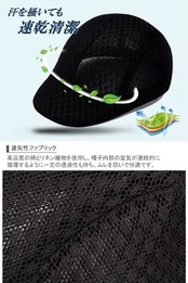 ・2枚のメッシュ素材が空気の層をつくり、暑さ、湿気、体温を調節し熱中症を予防する。
