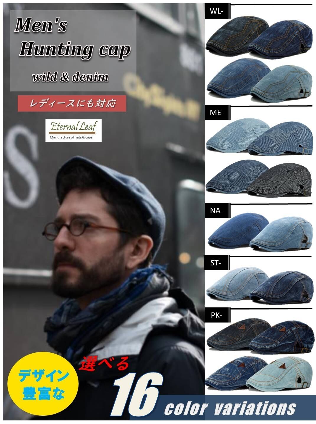 Eternal Leaf エターナル リーフ ハンチング 帽子 デニム キャップ FT4704(PK-DB4609)